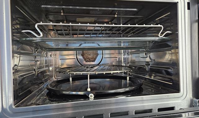 Uniek aan deze combimagnetron zijn de inschuifhoogtes. Met de bijgeleverde glazen bakplaat en inlegrooster heb je ruimte voor grotere ovenschalen en kun je zelfs op meerdere niveaus bakken!